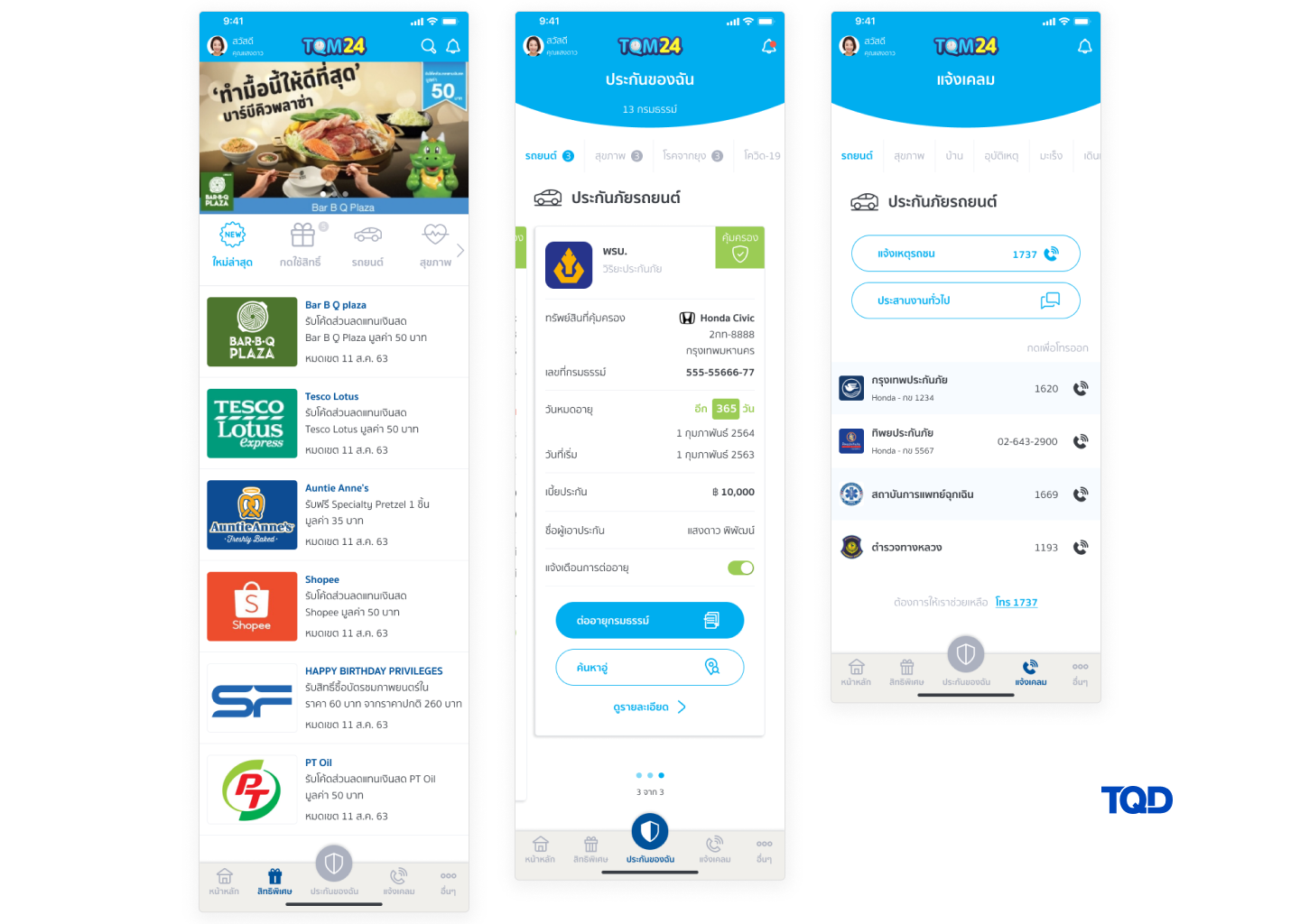 พัฒนาแอปพลิเคชันสำหรับให้บริการลูกค้าแบบครบวงจรตลอด 24 ชั่วโมง ผสมผสานงานออฟไลน์กับออนไลน์เข้าด้วยกัน มอบประสบการณ์ด้านประกันภัยที่ดีที่สุดให้กับลูกค้าทีคิวเอ็ม